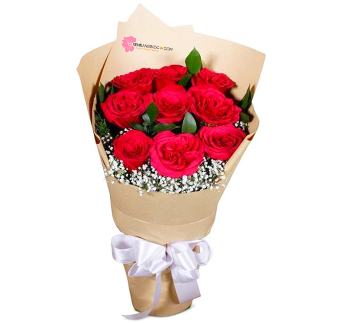 - 10 Tangkai Mawar Merah + Baby Breath